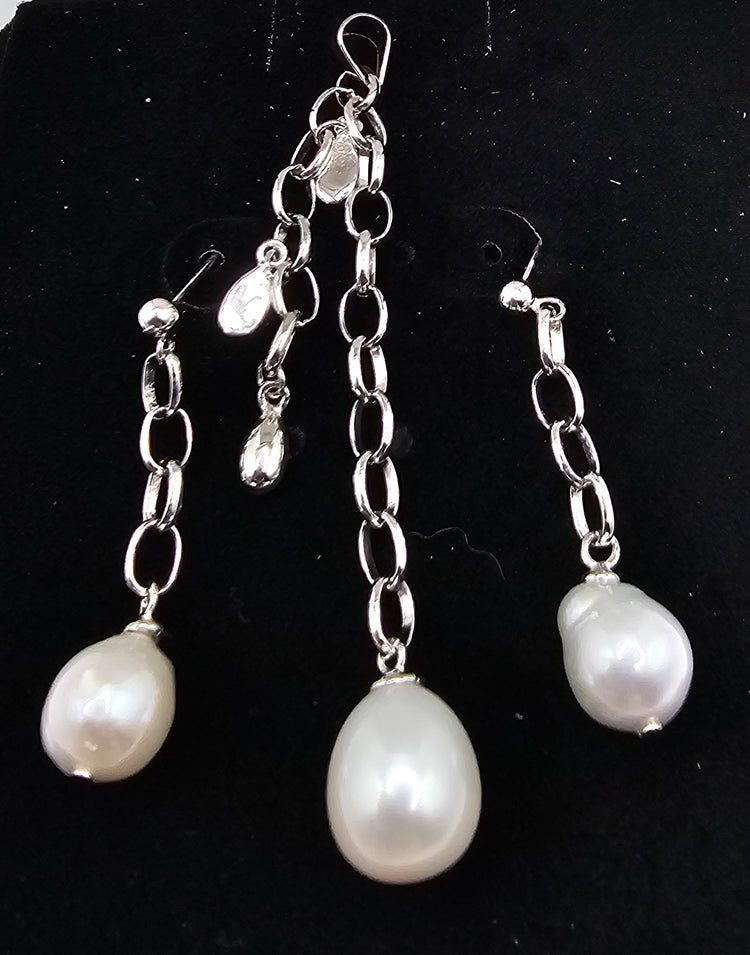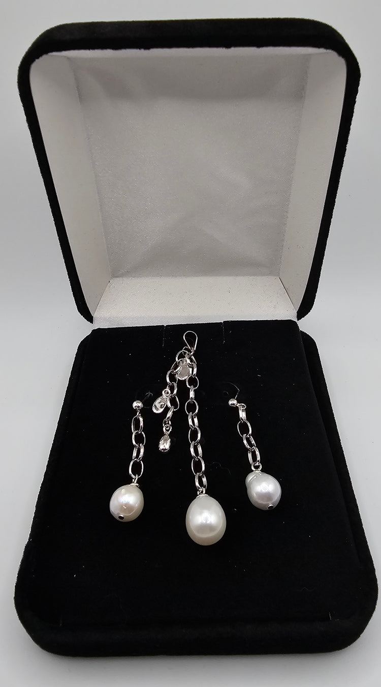 Special Concepts Dangling Long Chain Pearl Earrings with Matching Pearl Pendant