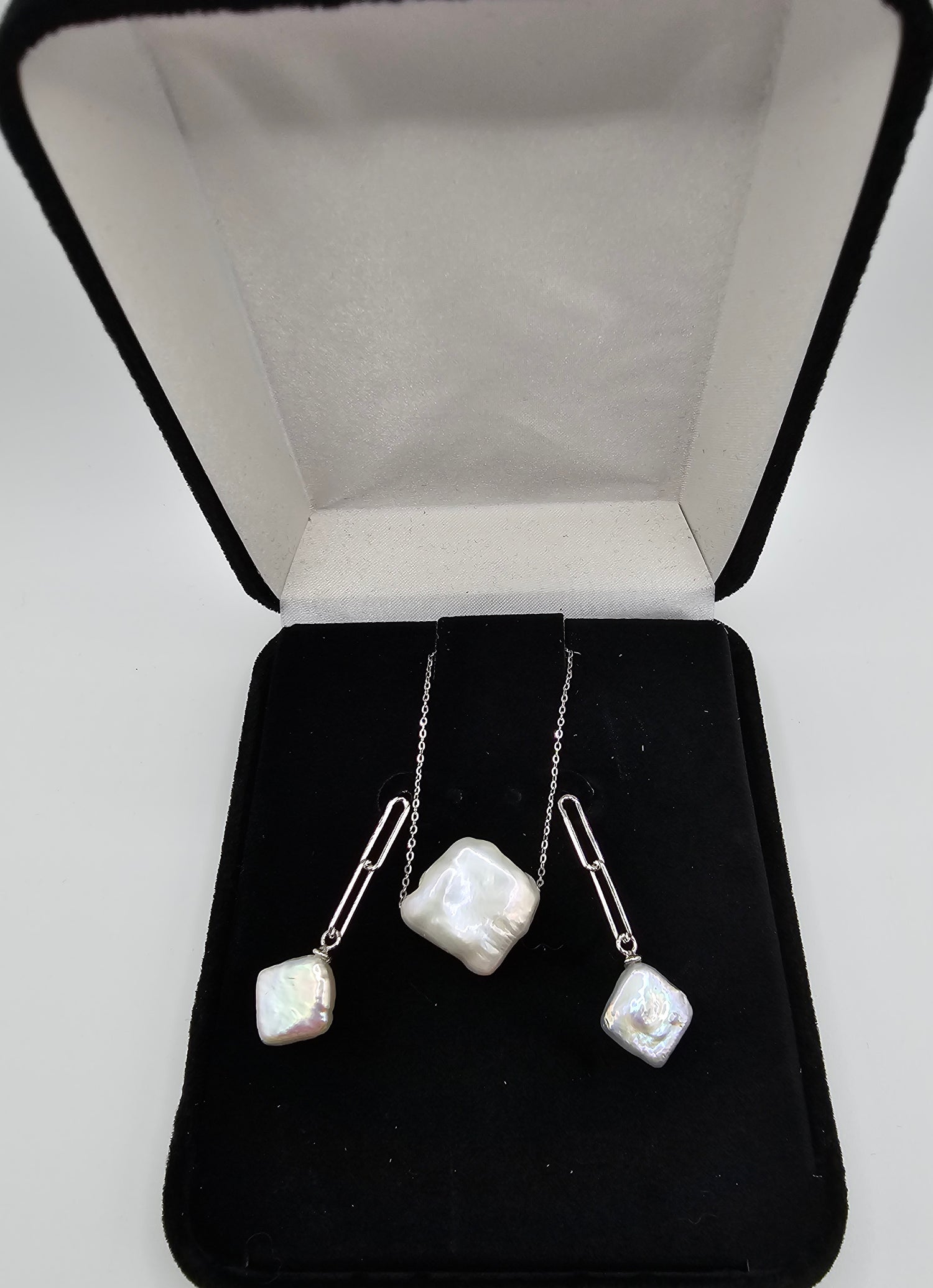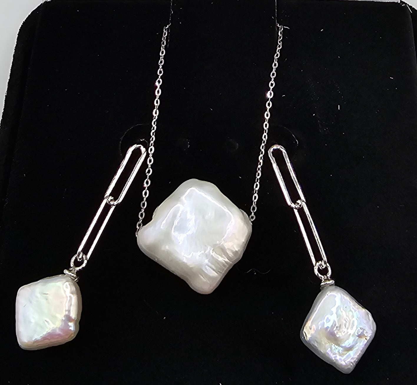 Special Concepts Square Paperclip Triangle Earrings with Matching Square Pendant with chain