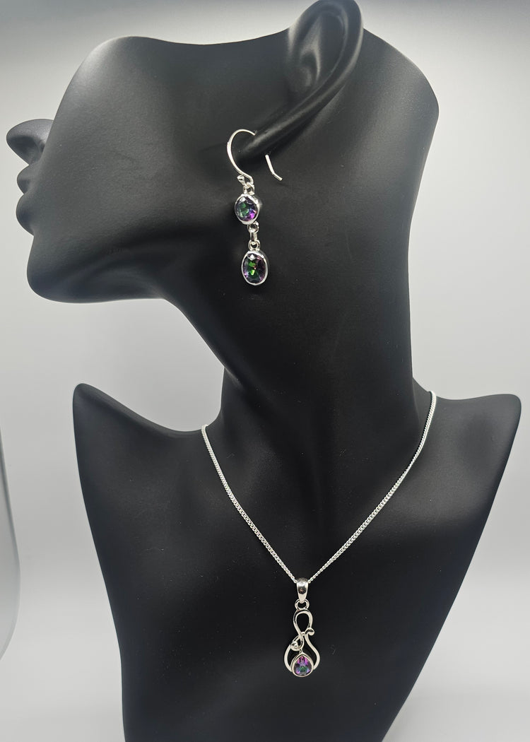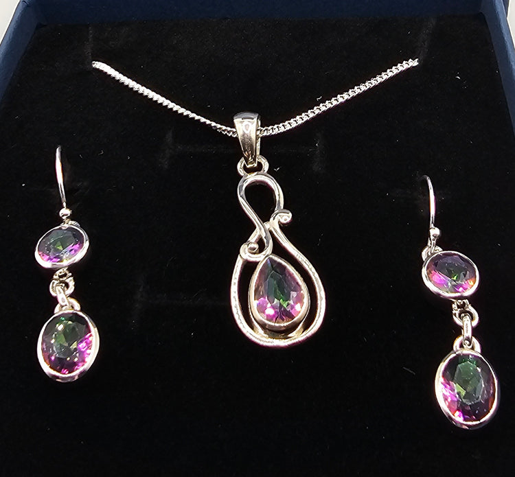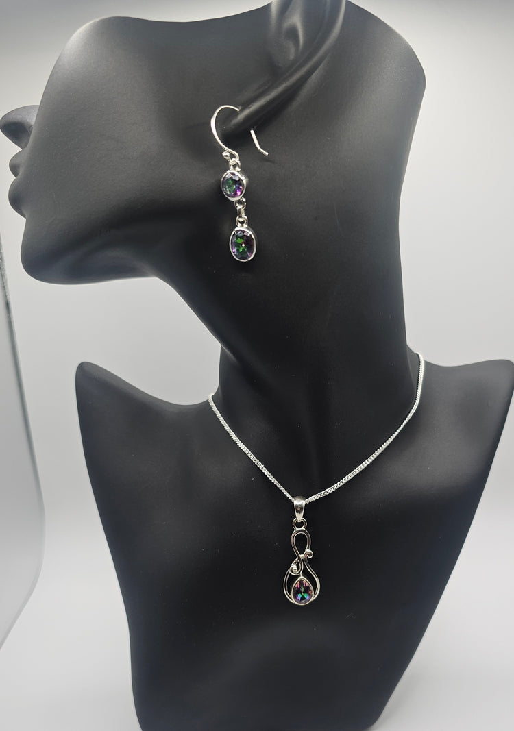 India Gems Fire Opal Earrings and Matching Pedant with Chain